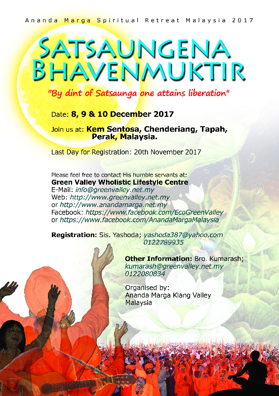 The “Ananda Marga Spiritual Retreat Malaysia 2017” will be on 8th to 10th December 2017 at Kem Sentosa, Chenderiang, Tapah, Perak, Malaysia.